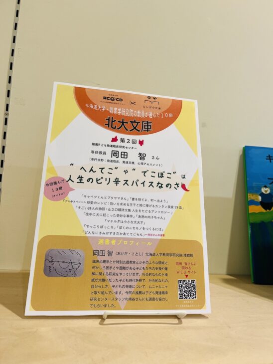 地域書店との連携企画として実施している、当センター教員による選書コーナー「北大文庫」の第2弾が10月8日よりスタートしました。ダイヤ書房内「ヒシガタ文庫」(札幌市東区)の協力で、今年度は3名の教員が2か月ごとに、店内に設置された「北大文庫」コーナーの選書を担当します。第2回(10月・11月)は、岡田智准教授が「”へんてこ” や “でこぼこ” は人生のピリ辛スパイスなのさ」をテーマに10冊を選びました(うち1冊は、当センタースタッフ南谷の推薦です)。書店を訪れて、ぜひ手にとってご覧ください。